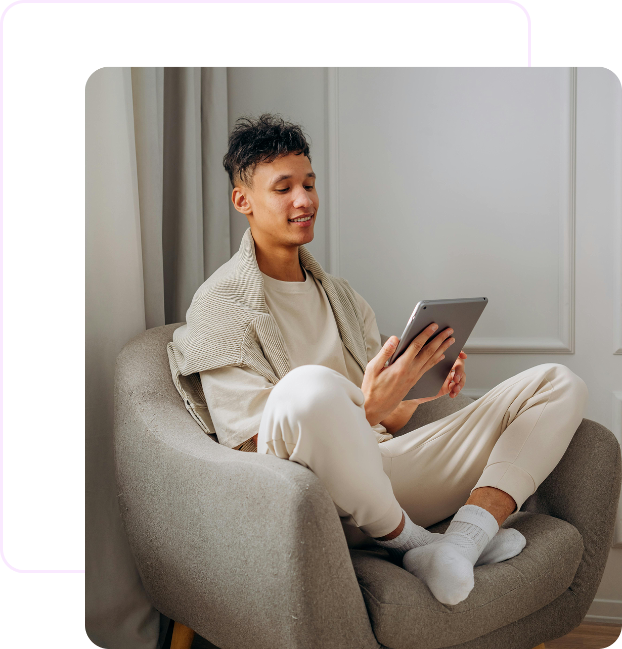 Samtalerne foregår online, så du kan sidde derhjemme eller et sted, hvor du føler dig tryg. Forløbet tilpasses dig og dine behov, og du bestemmer selv, hvad du har lyst til at tale om. Vi er her for at lytte, støtte og hjælpe dig med at få mere ro og overblik over din hverdag.